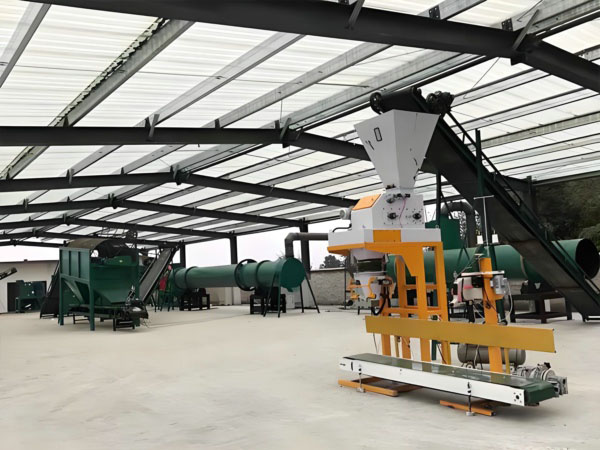 工藝流程:發酵翻堆機--配料秤--粉碎機--攪拌機--造粒機--烘干機--冷卻機--篩分機--拋圓機--包膜機--包裝機--碼垛機